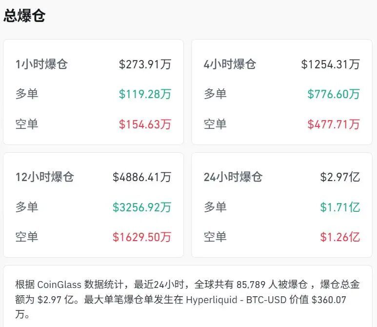 根据CoinGlass数据统计,最近24小时,全球共有超8万人爆仓。