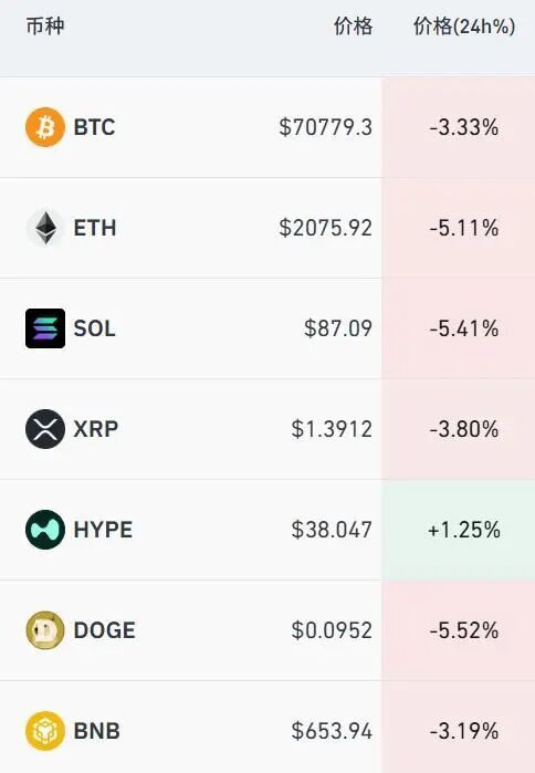 3月14日,加密货币集体跳水,比特币跌破71000美元。